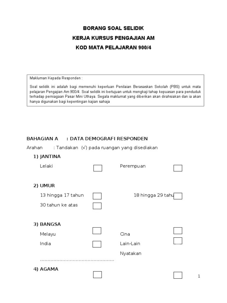 Borang Kaji Selidik Sejarah : Contoh Borang Temu Bual Kerja Kursus Sejarah Stpm Temusahaja